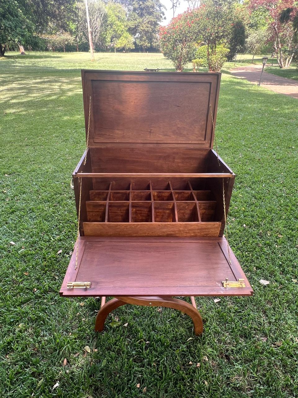 Bring the spirit of sundowners to your home, terrace, or safari lodge with the Sundowner Bar. Handcrafted from Mvule or Meru Oak, this versatile bar features foldable legs for portability, making it perfect for travel, safari camps, or entertaining at home. Use it as a coffee table, a movable tray, or a classic bar setup. Each piece is carefully crafted for timeless style, natural warmth, and luxury living. Available on order.